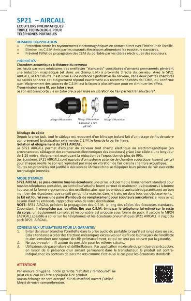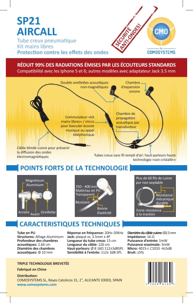 Der SP21 AIRCALL ist ein spezielles Air-Tube-In-Ear-Headset, das für eine strahlungsarme Nutzung von Mobiltelefonen entwickelt wurde. Im Unterschied zu herkömmlichen Ohrhörern werden keine elektrischen Leiter oder Lautsprecher direkt im Ohr verwendet. Der Schall wird stattdessen über einen Luftschlauch (Air-Tube) zum Ohr übertragen.